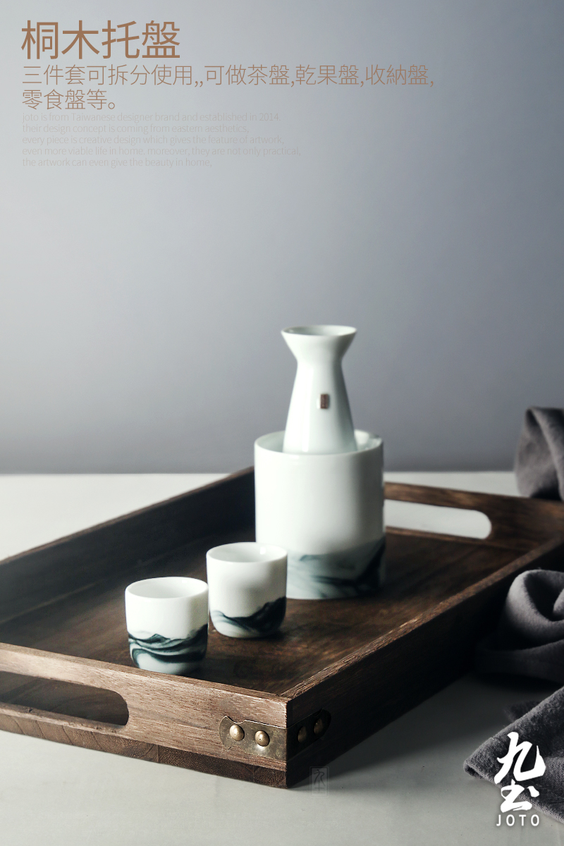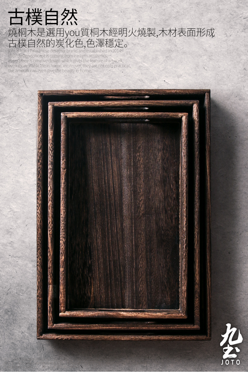 【JOTO Japanese-style Vintage Feather Wooden Rectangle Serving Tea Tray Set_PJR0045】