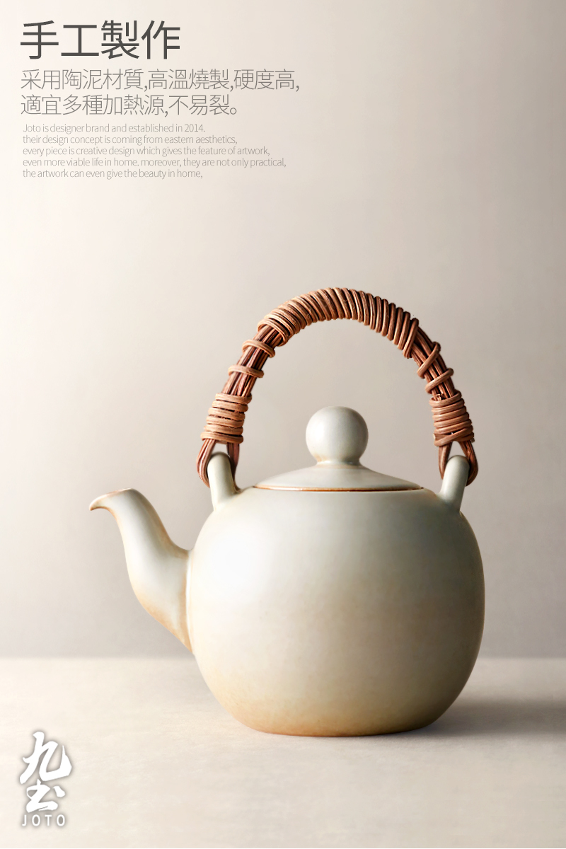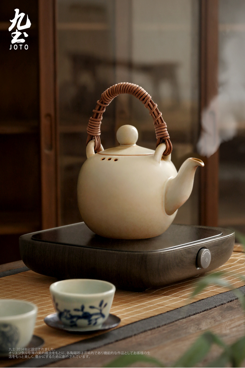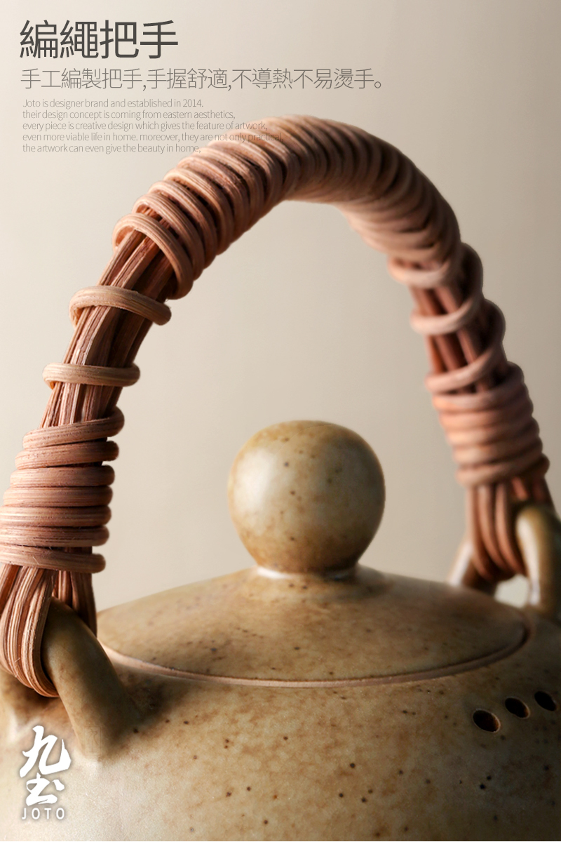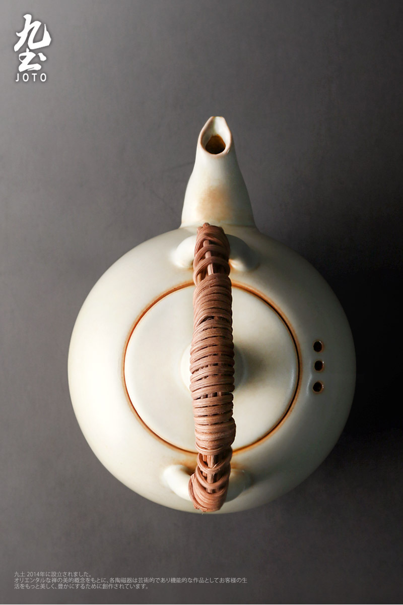 【Joto Japanese Style Heat-resistant Ceramic Tea Pot with Bamboo Wrapped Handle_CHR0630】