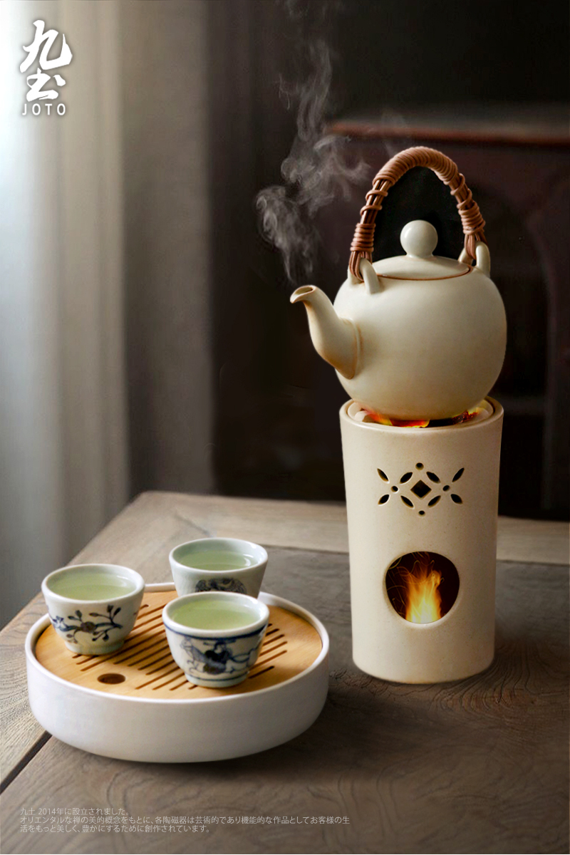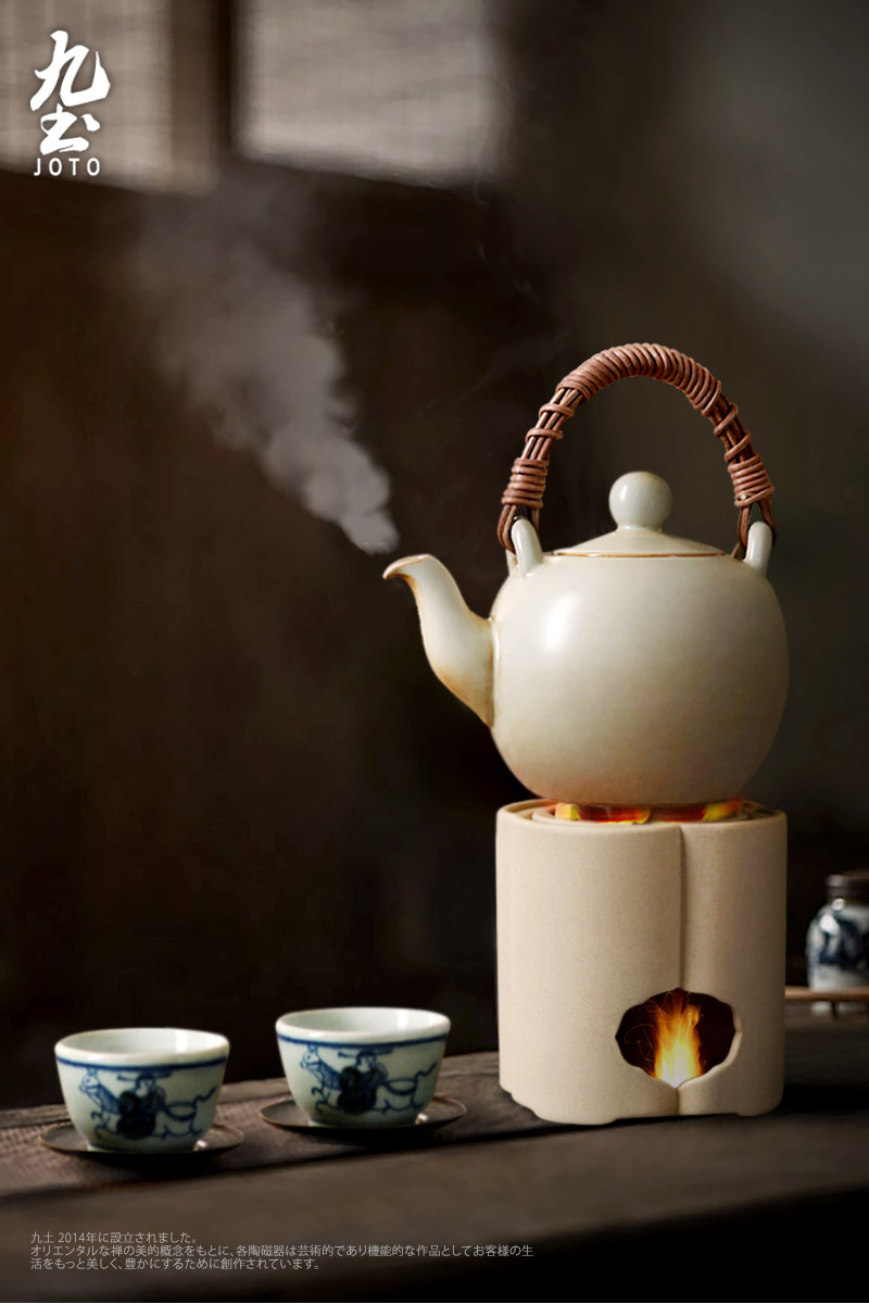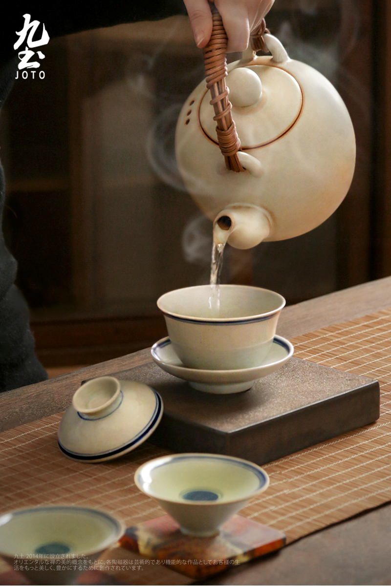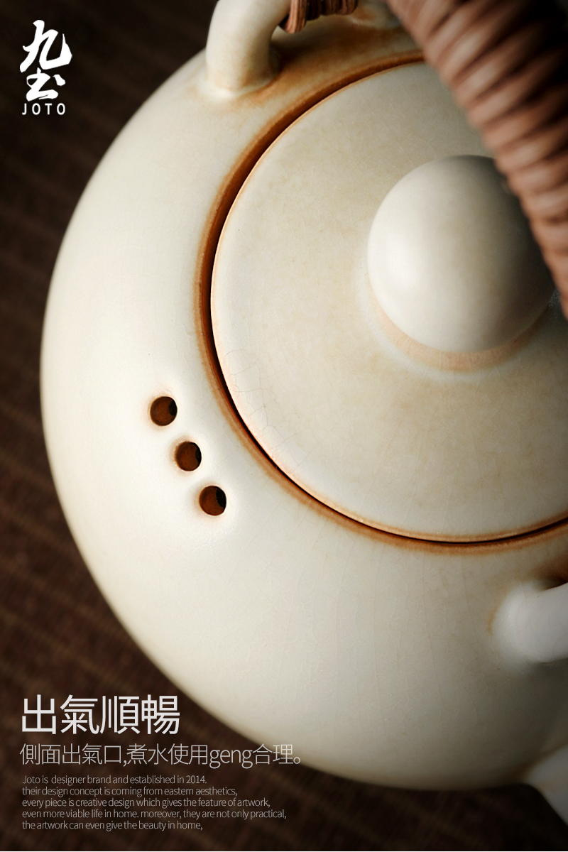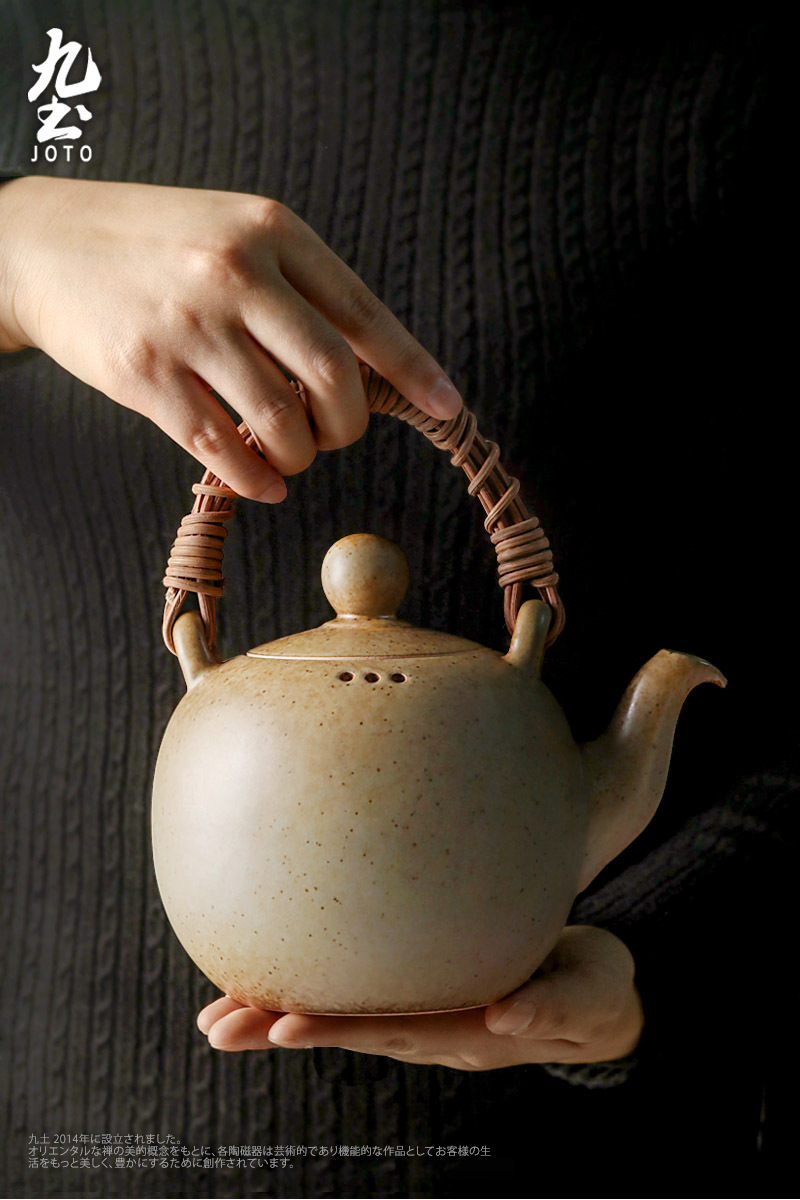 【Joto Japanese Style Heat-resistant Ceramic Tea Pot with Bamboo Wrapped Handle_CHR0630】