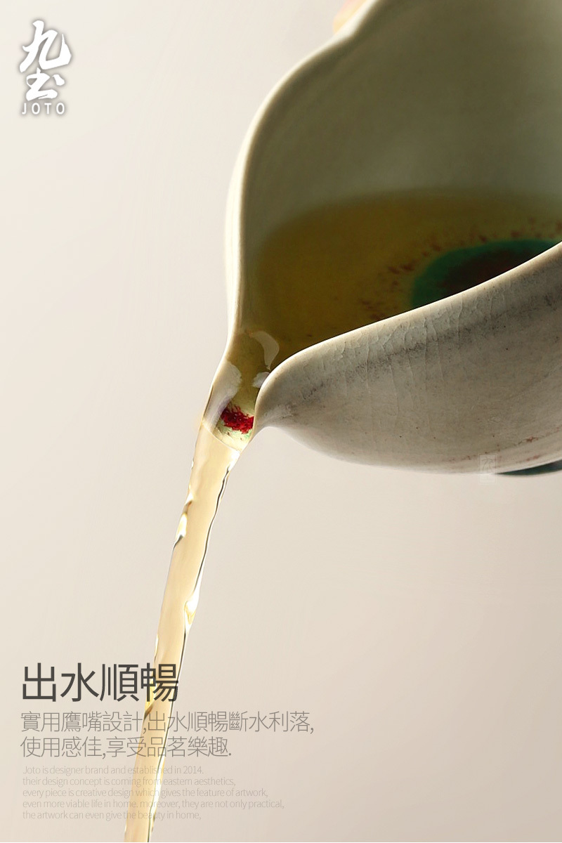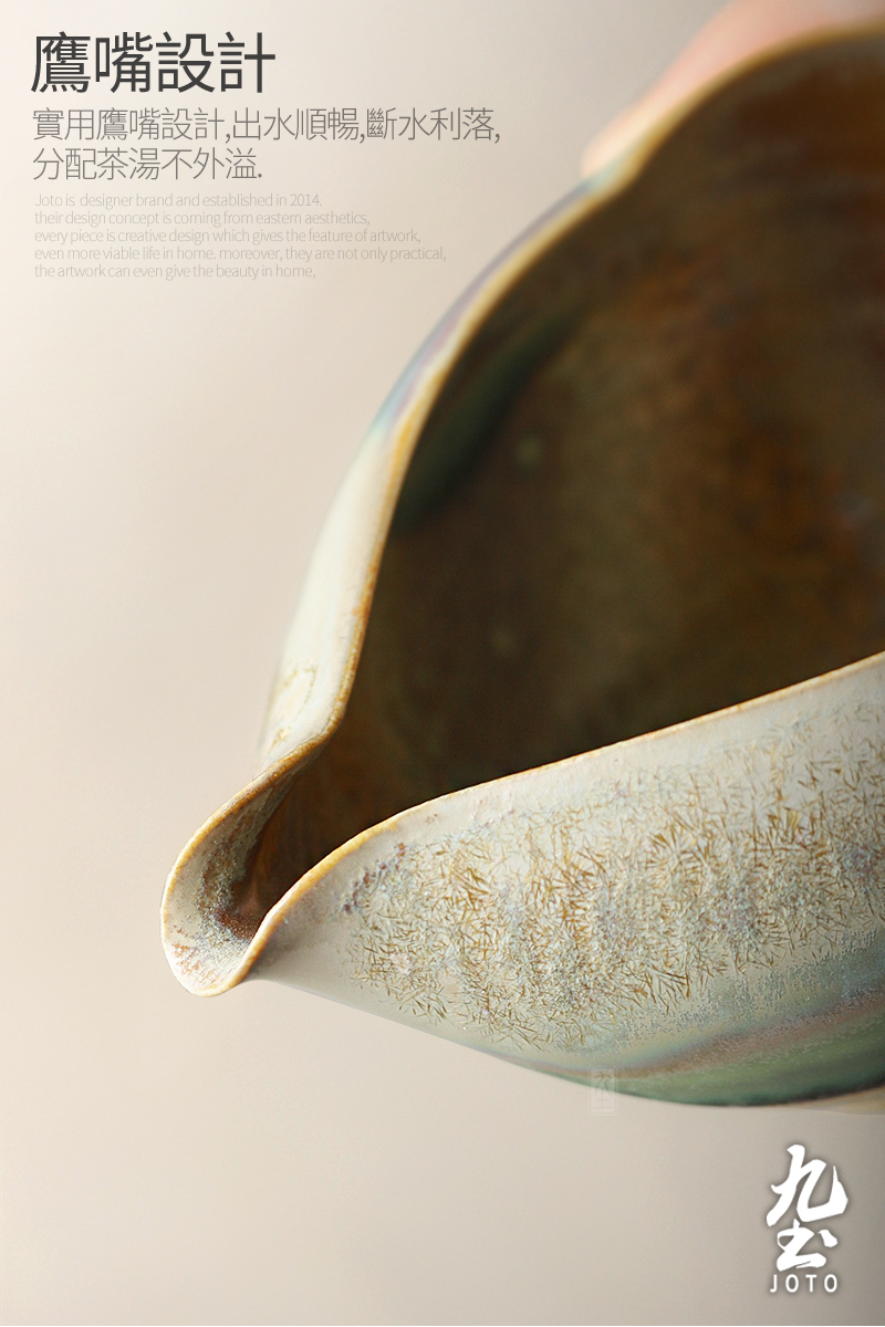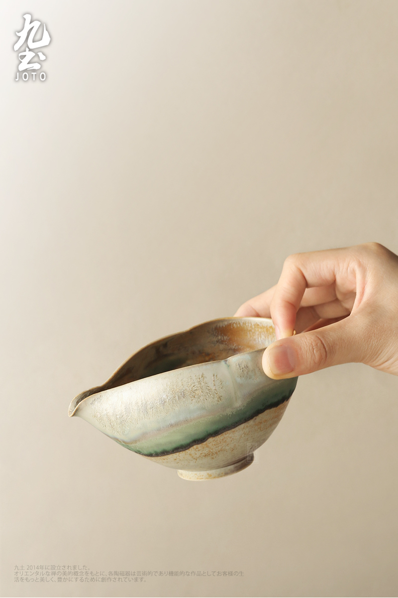 Spout design for a clean break in water flow, featuring a unique kiln-glazed finish.