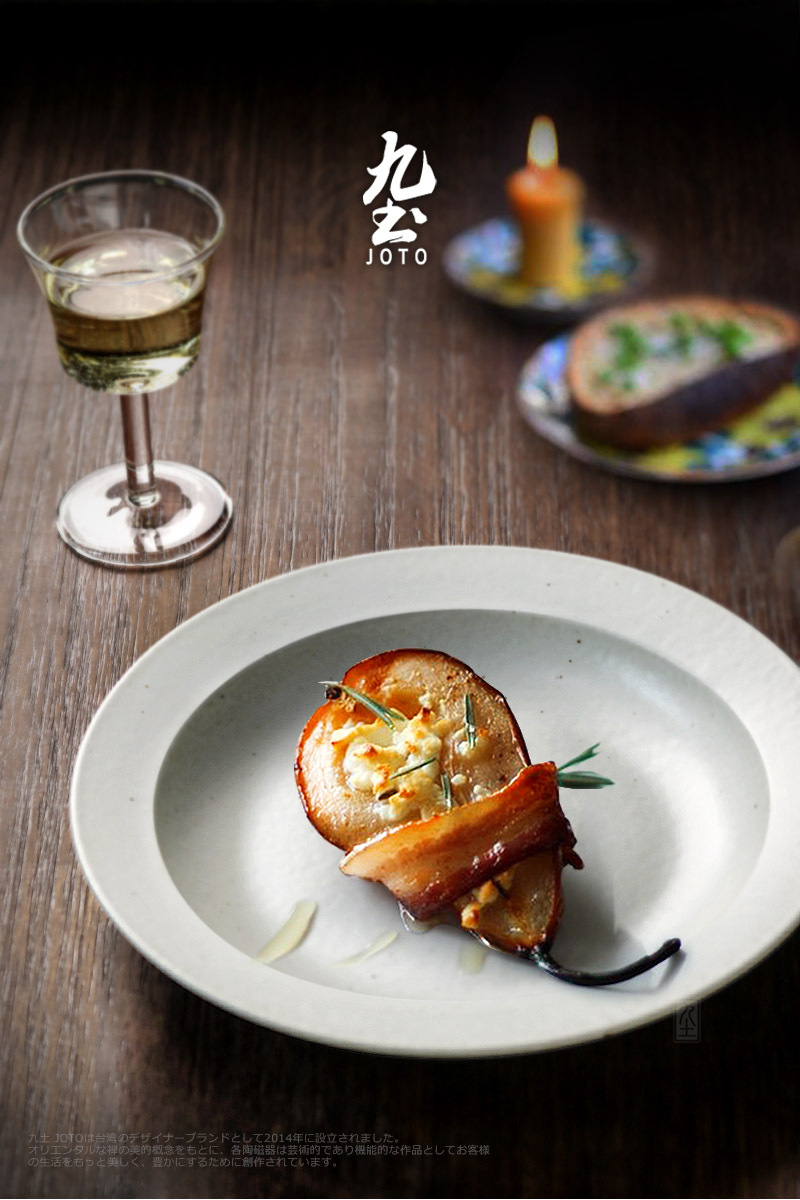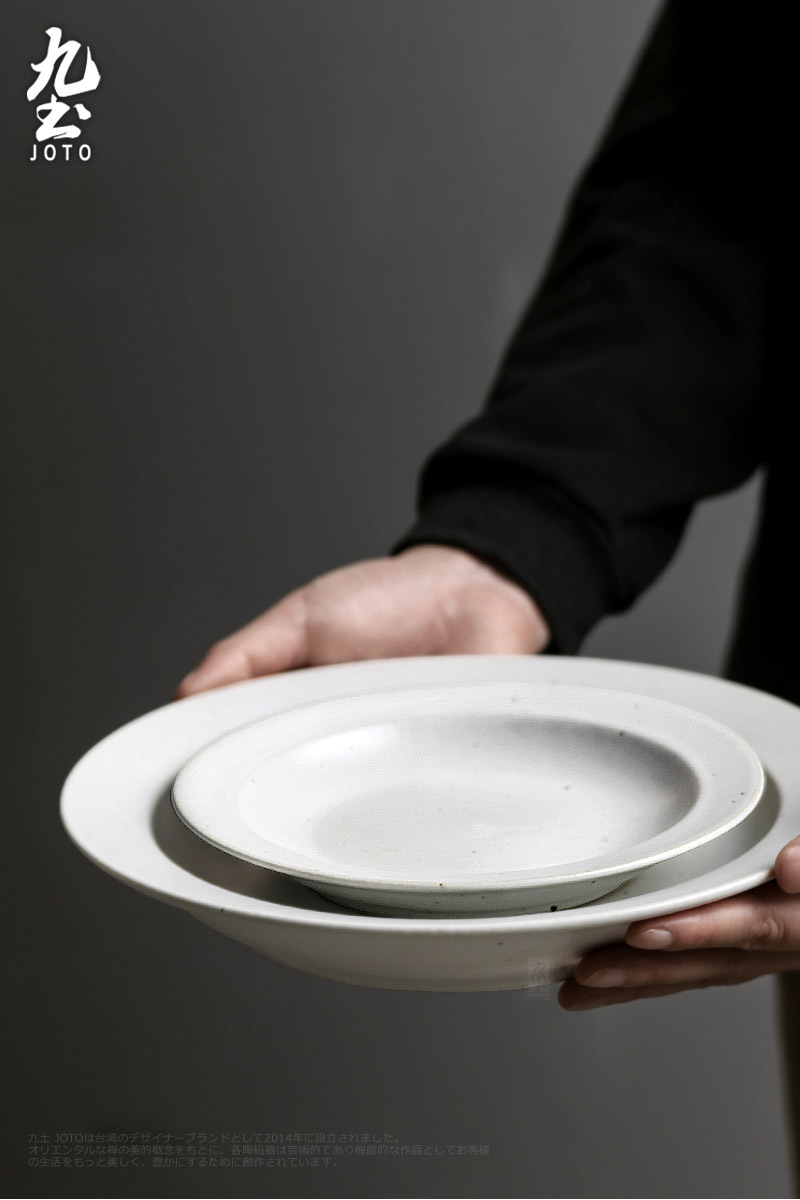 【Joto Japanese Style Handmade Vintage Coarse Pottery Deep Dish Plates Dinnerware Tableware_CJR0447】