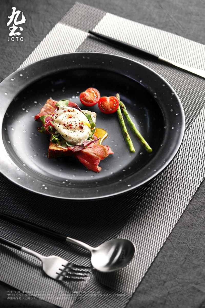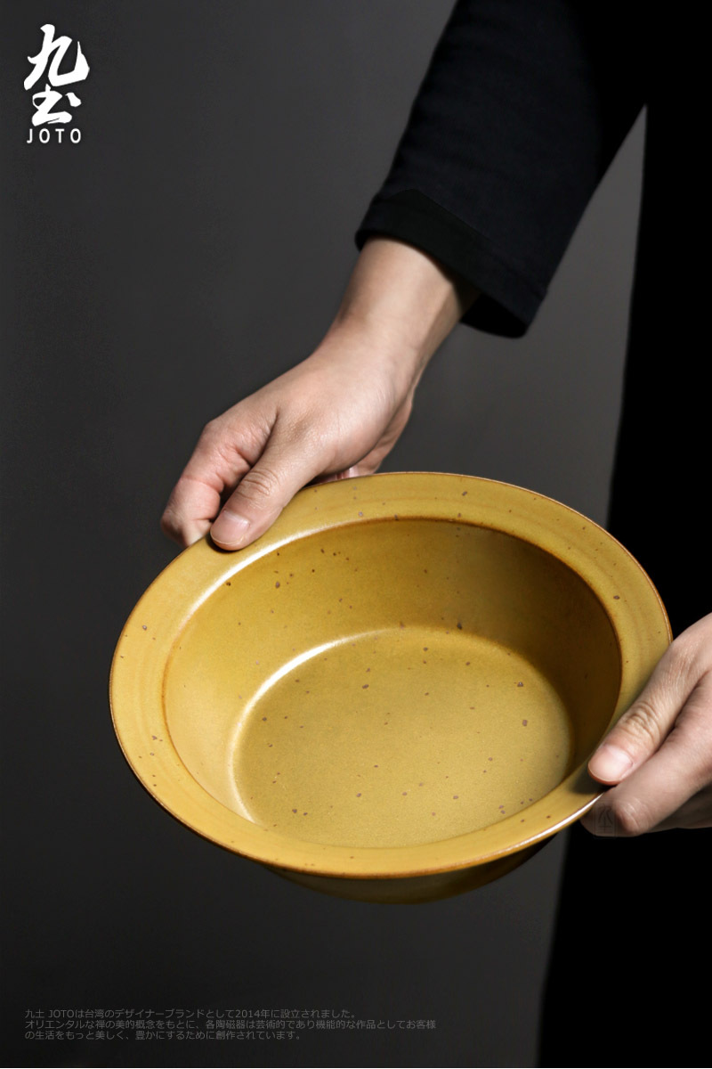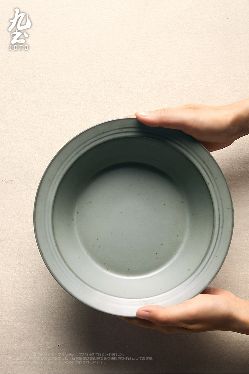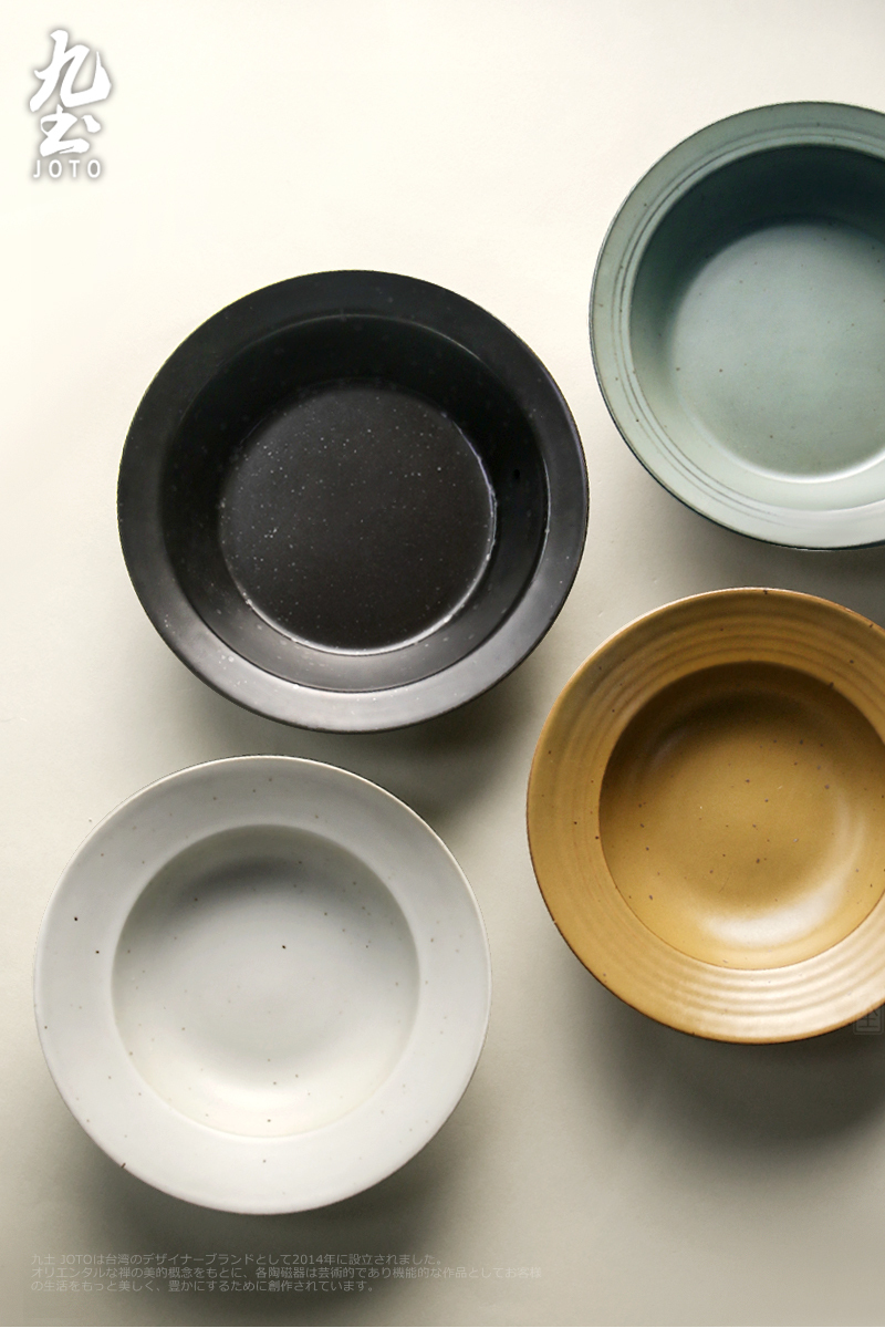 Joto Japanese Style Handmade Vintage Coarse Pottery Deep Dish Plates Dinnerware Tableware_CJR0447