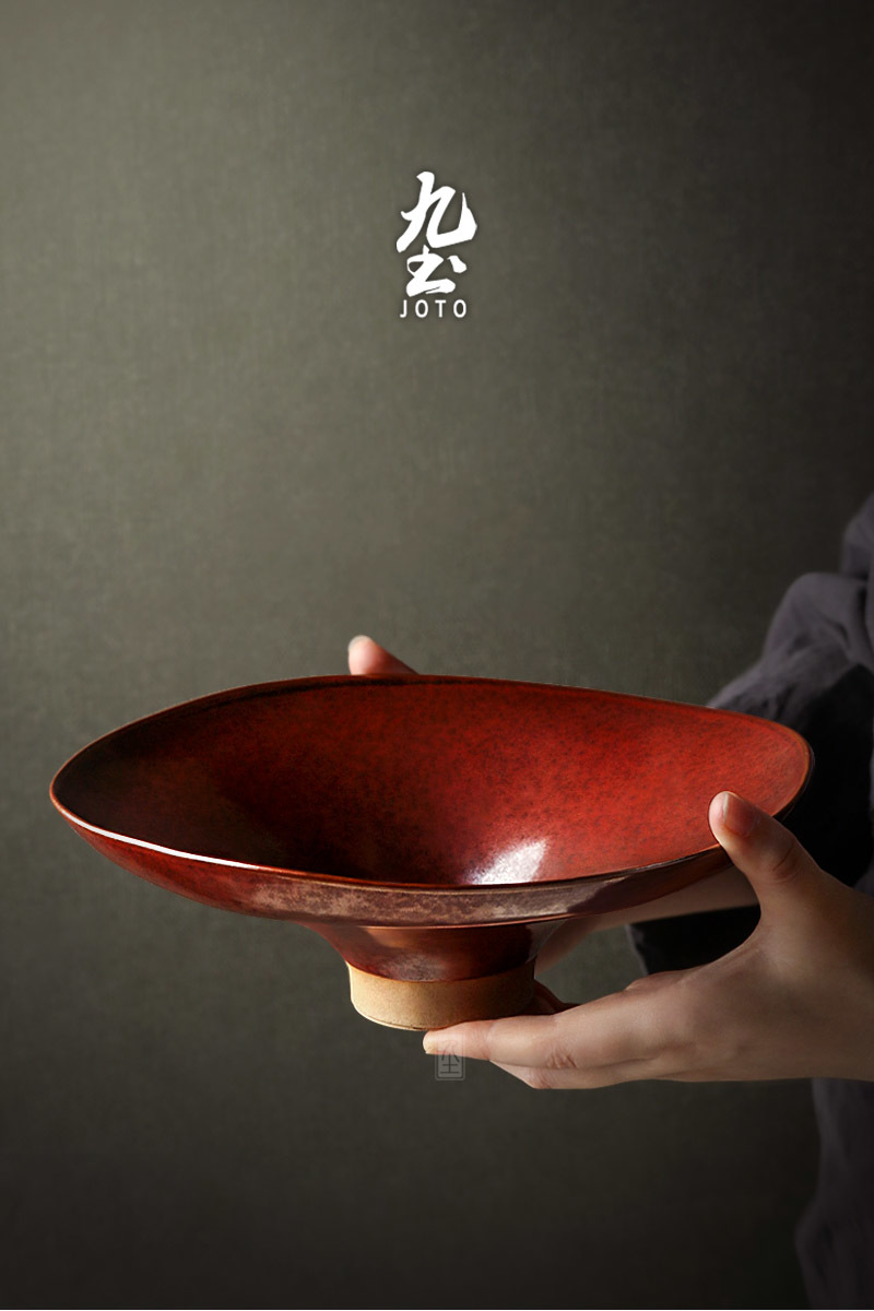 Handcrafted creative lotus leaf bowl edge, retro glaze.