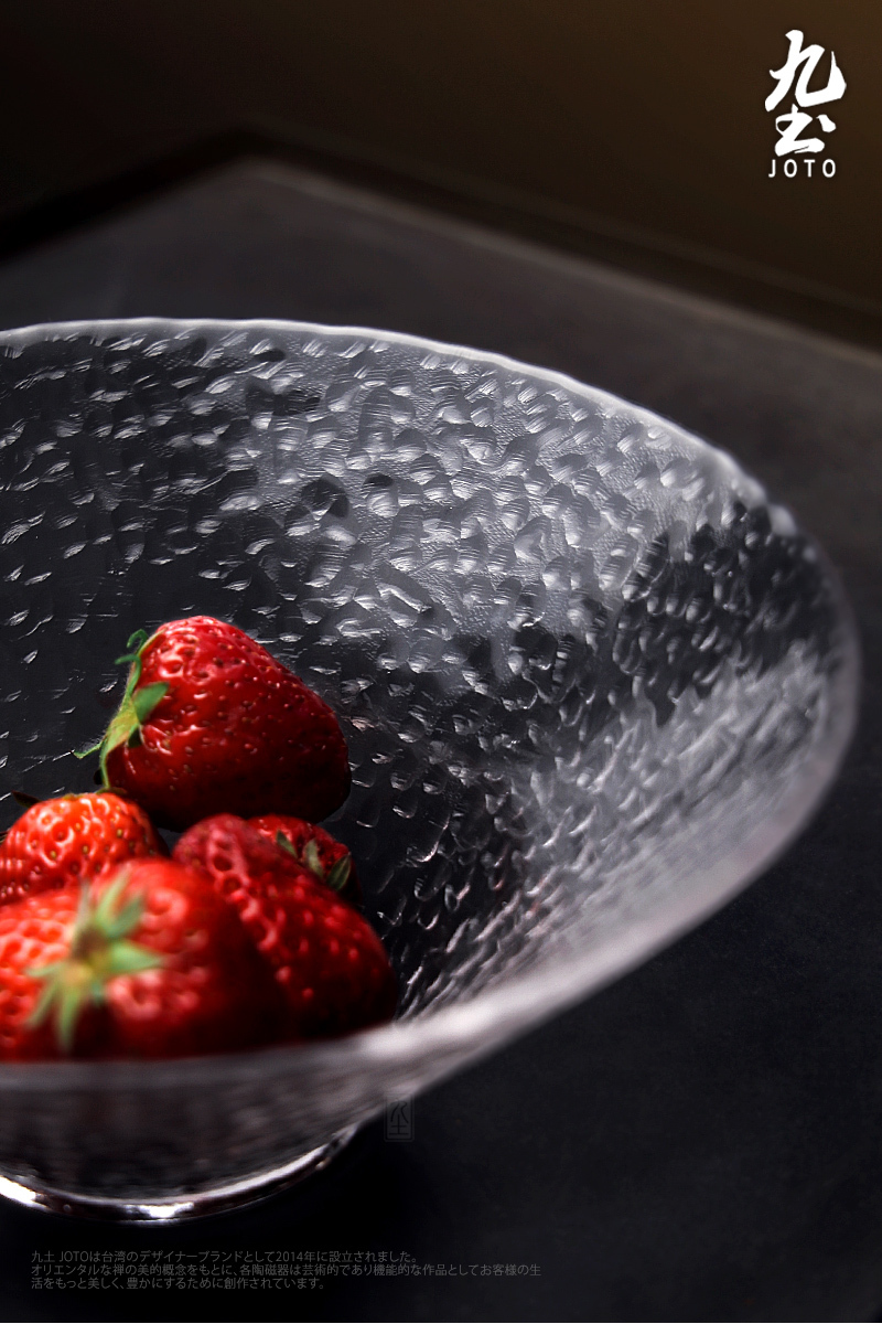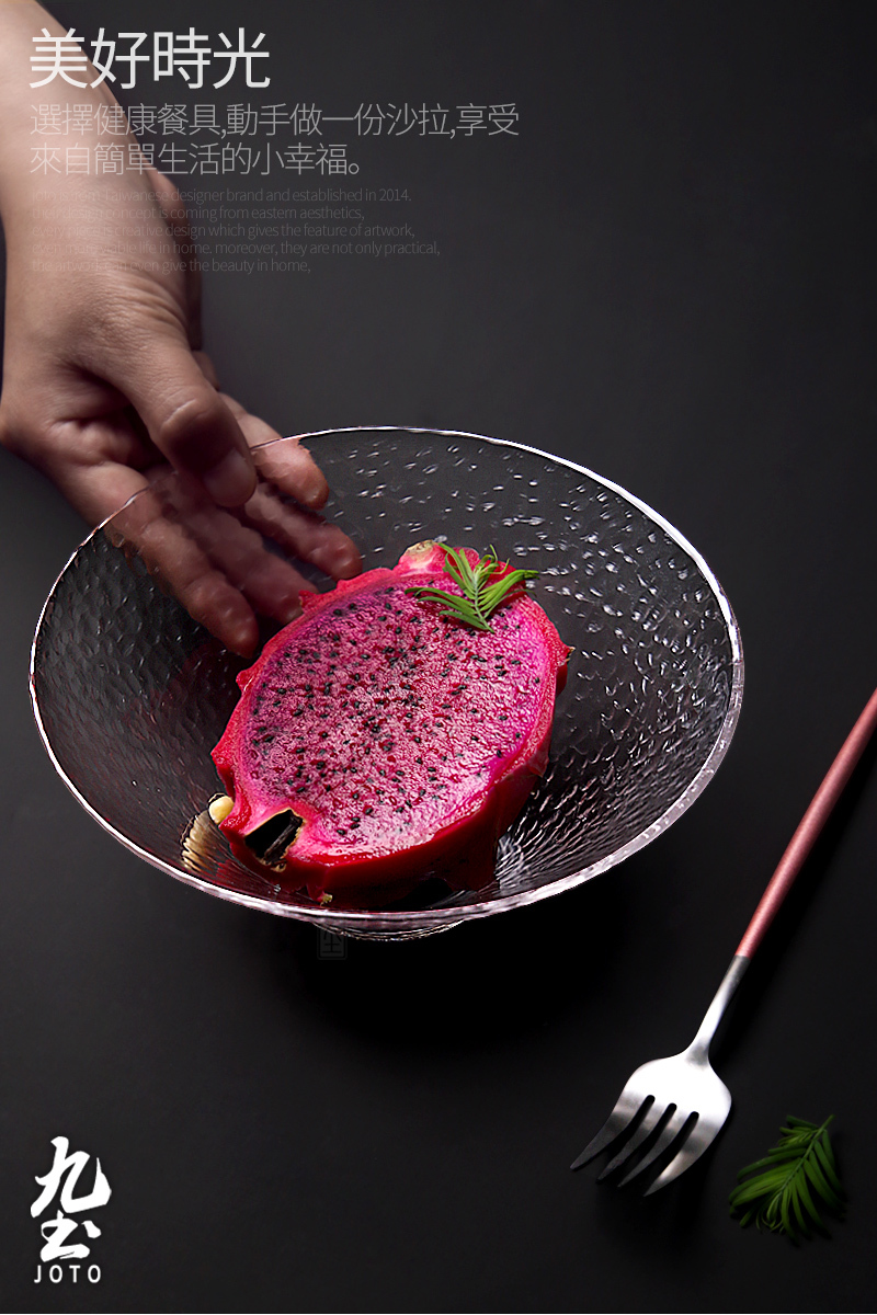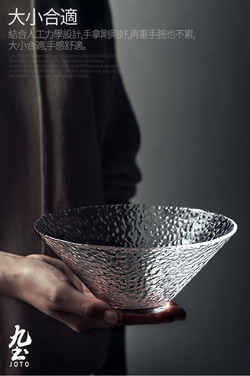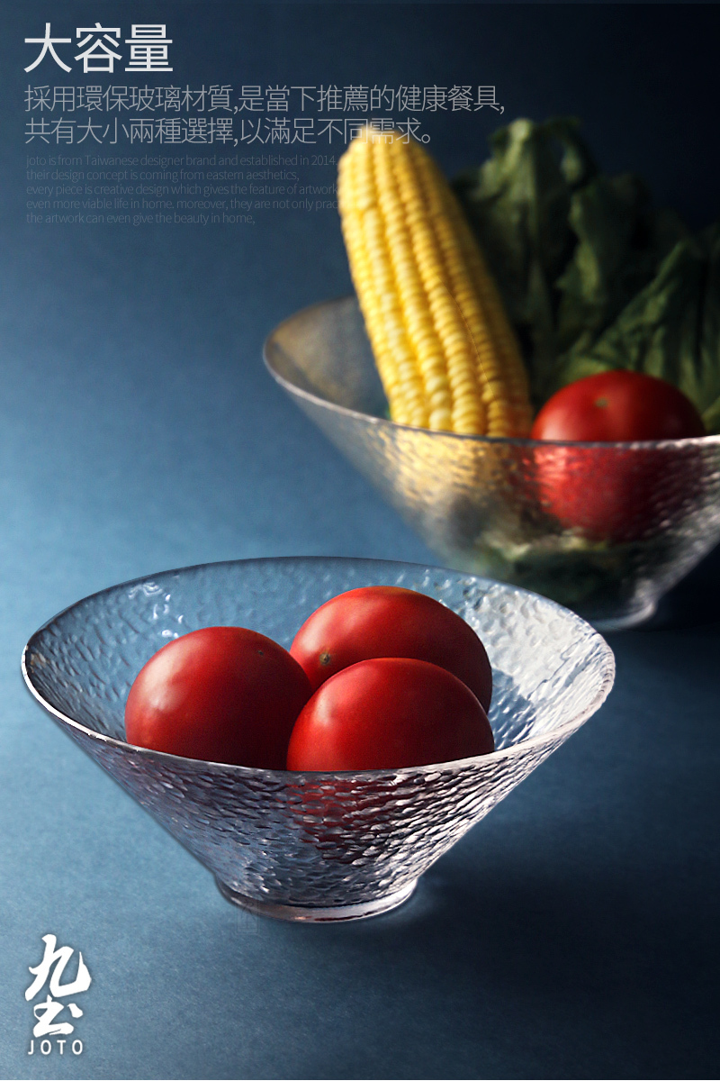 Modern simple hammer texture glass salad bowl, thick and resistant, easy to clean.