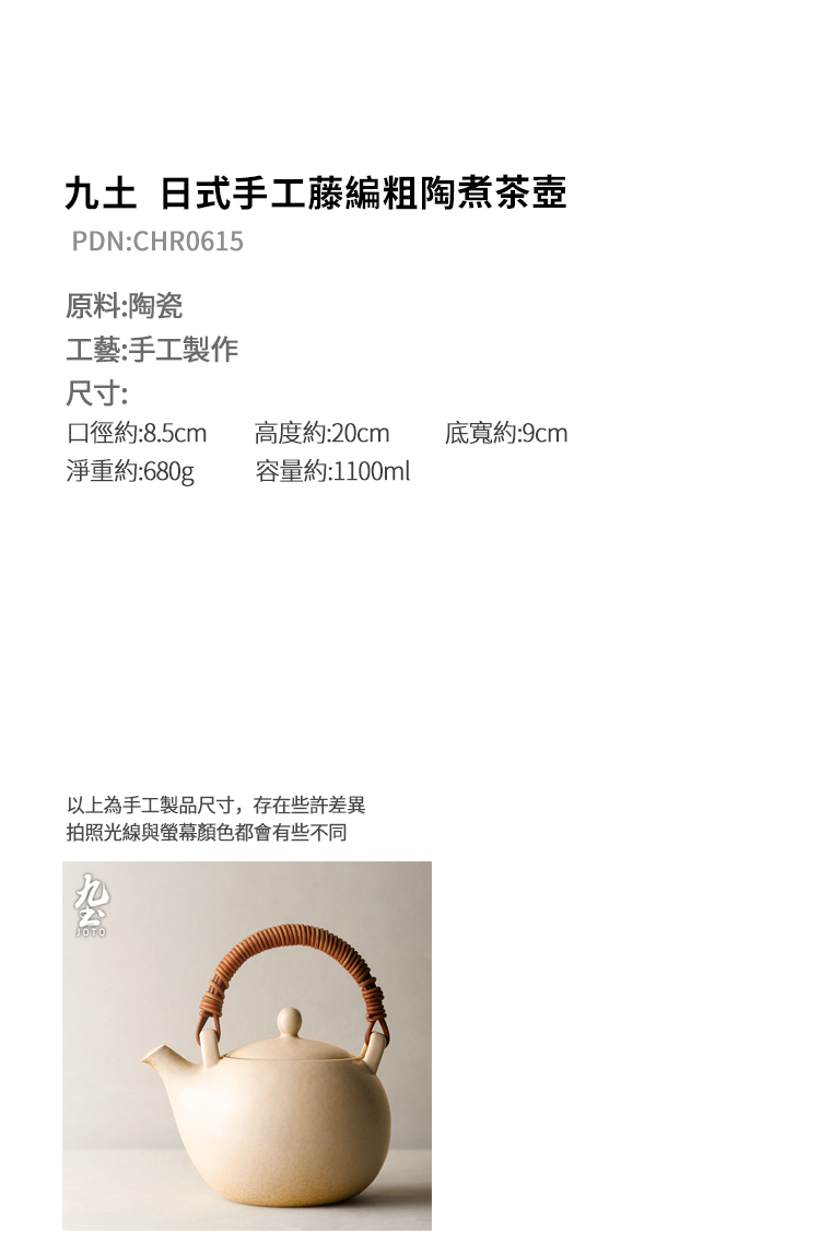 九土 日式手工藤編粗陶煮水壺_CHR0615