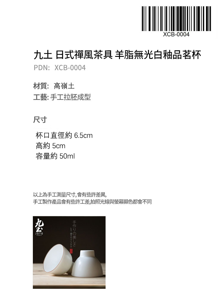 九土 羊脂無光白釉品茗杯_ XCBR0004