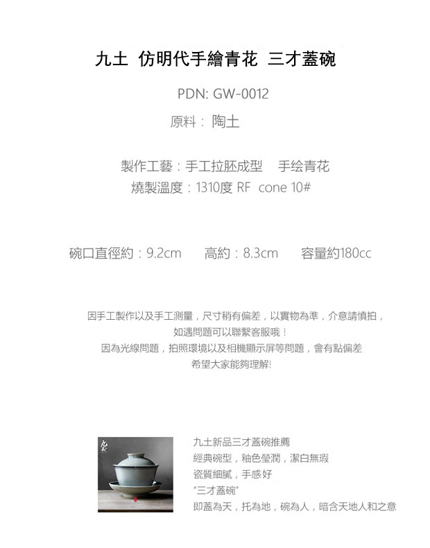 九土 仿明代手繪青花三才蓋碗_GWR0012