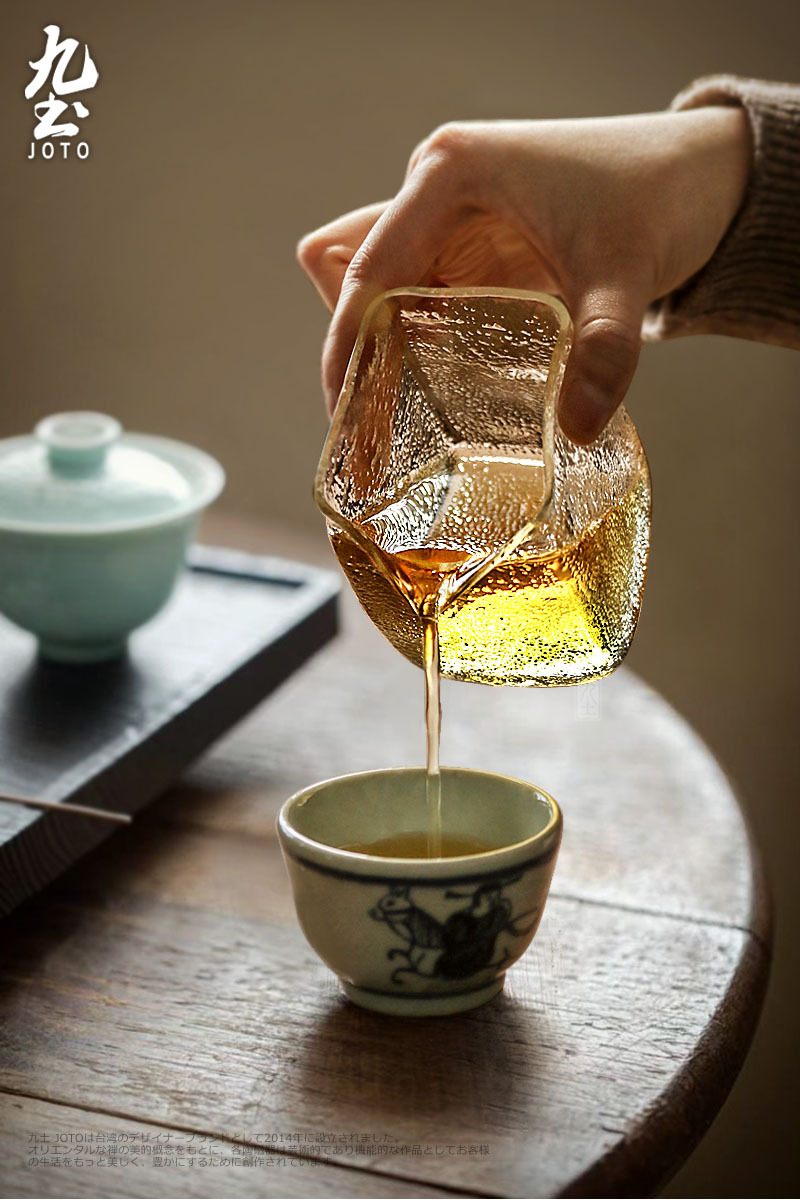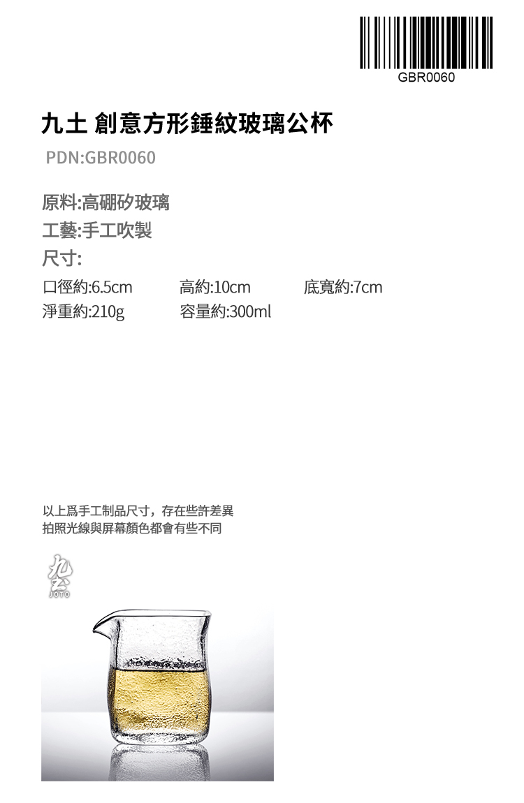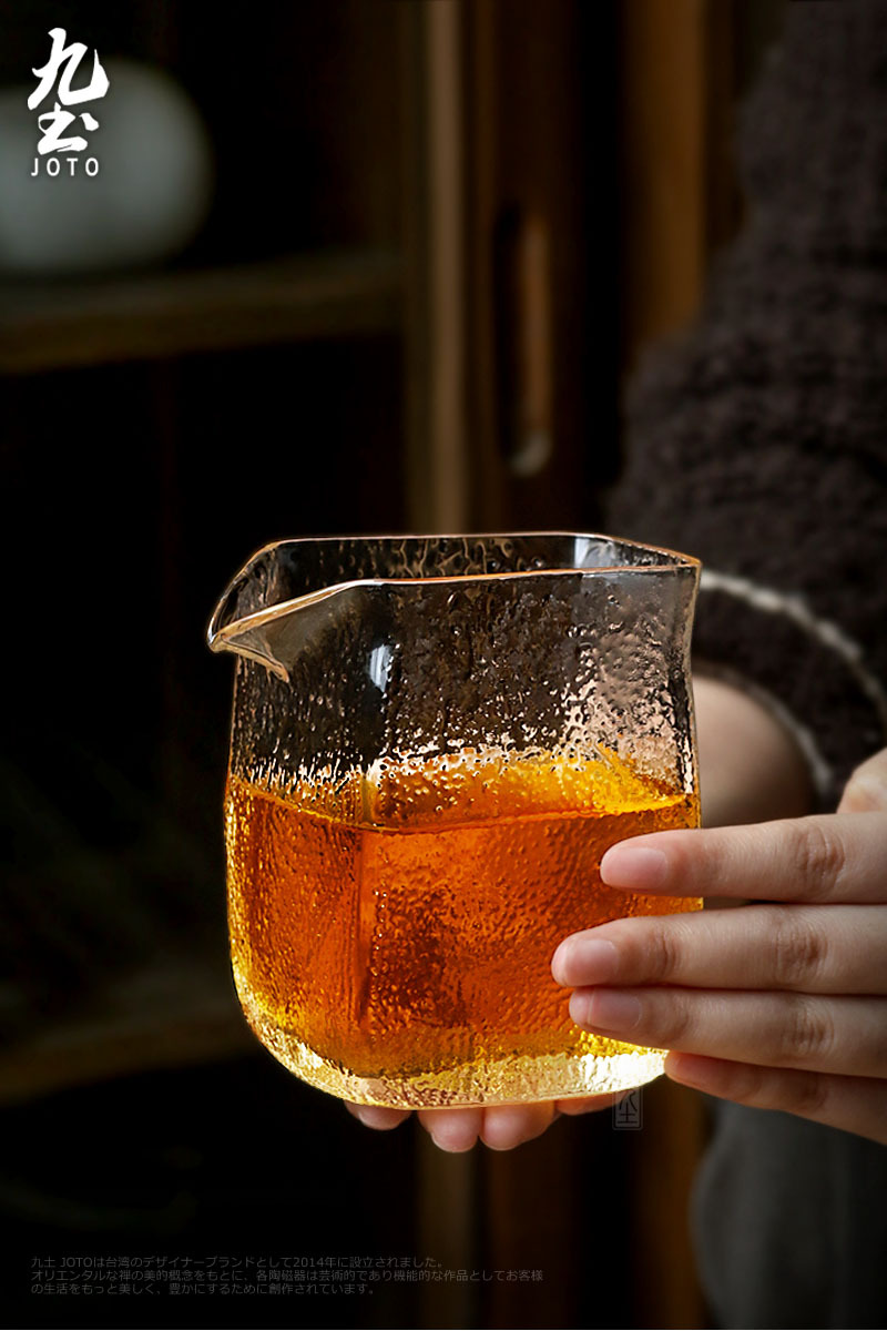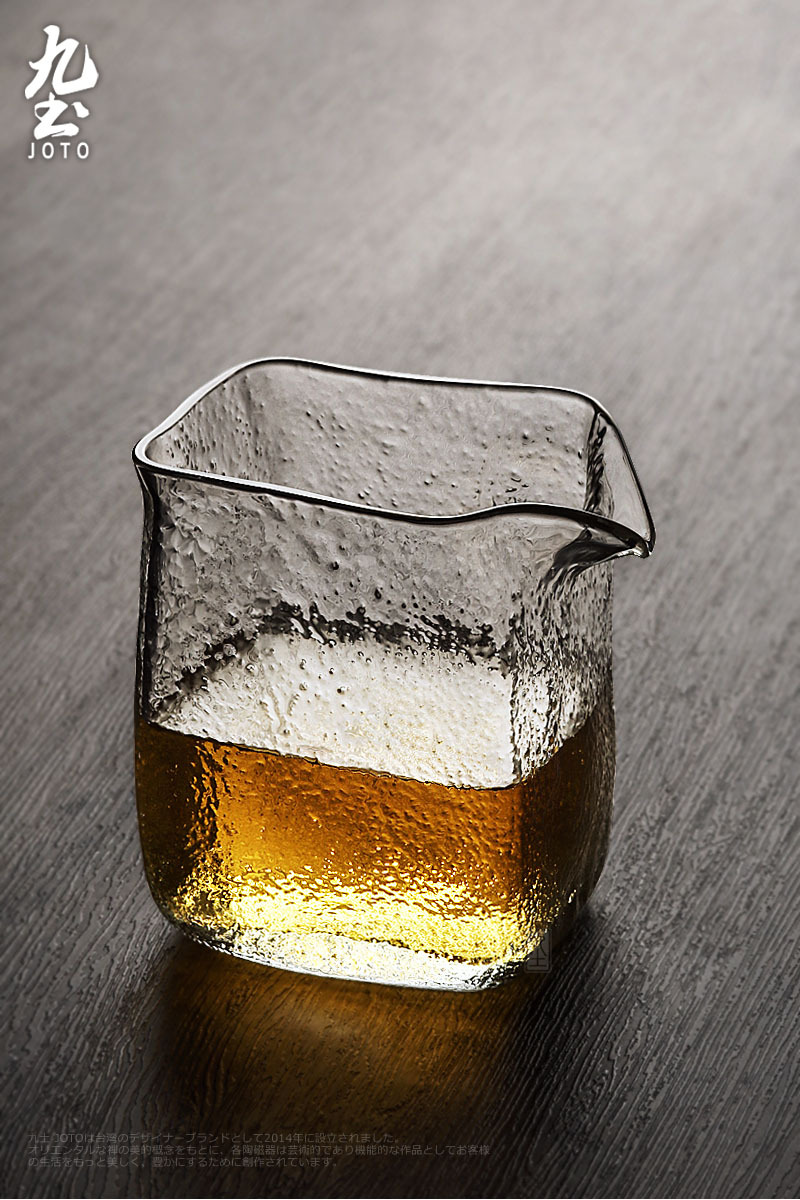 手工吹製 方形錘紋公杯 耐熱玻璃材質