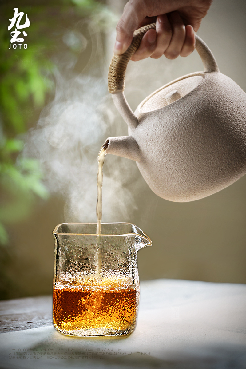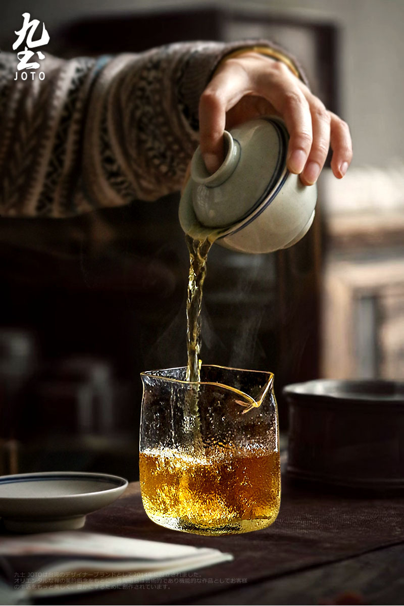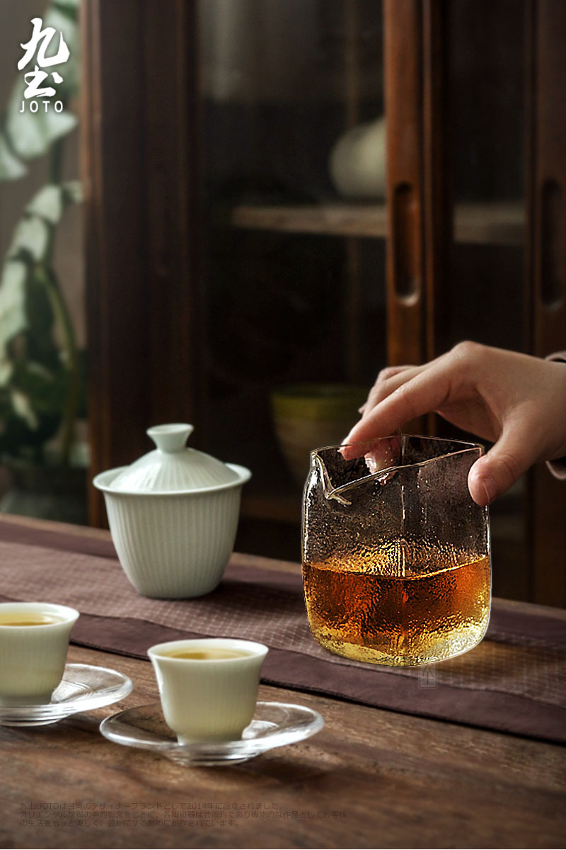 手工吹製 方形錘紋公杯 耐熱玻璃材質