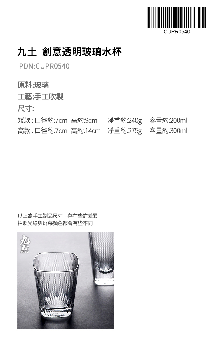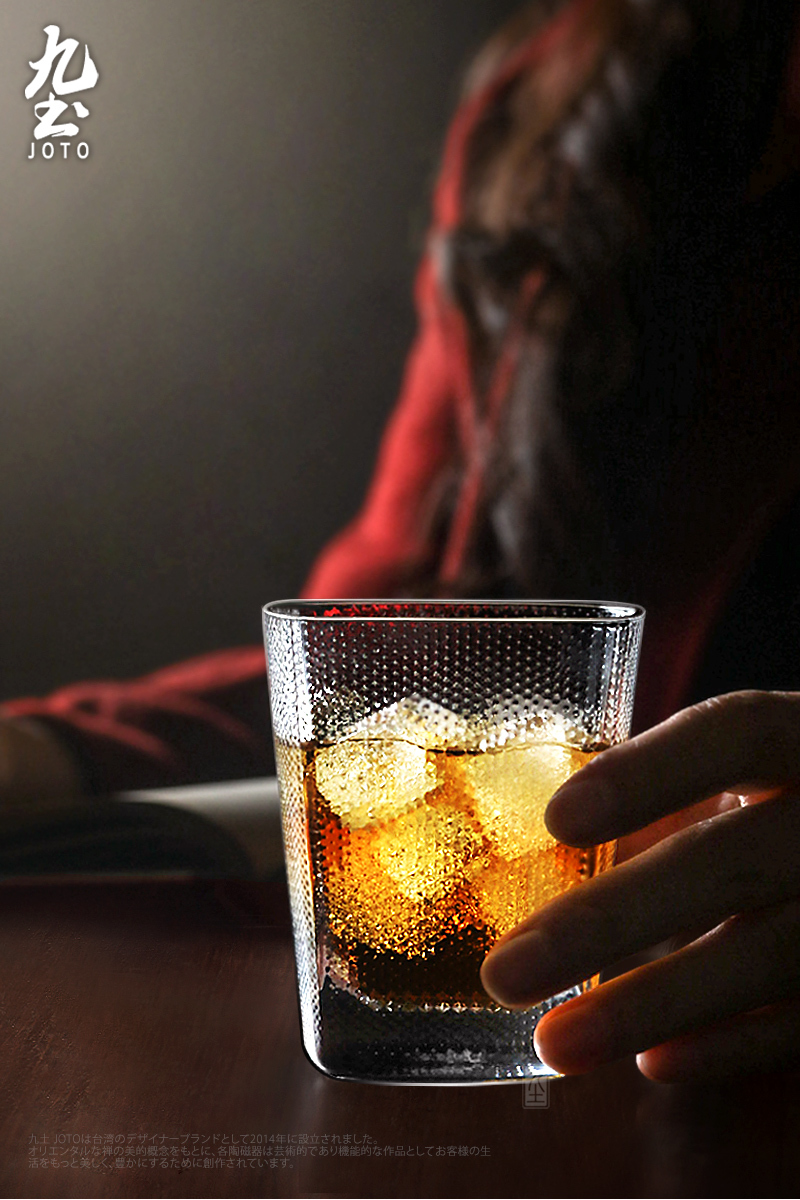 手工製 創意錘紋點方形水杯 內壁光滑易清洗