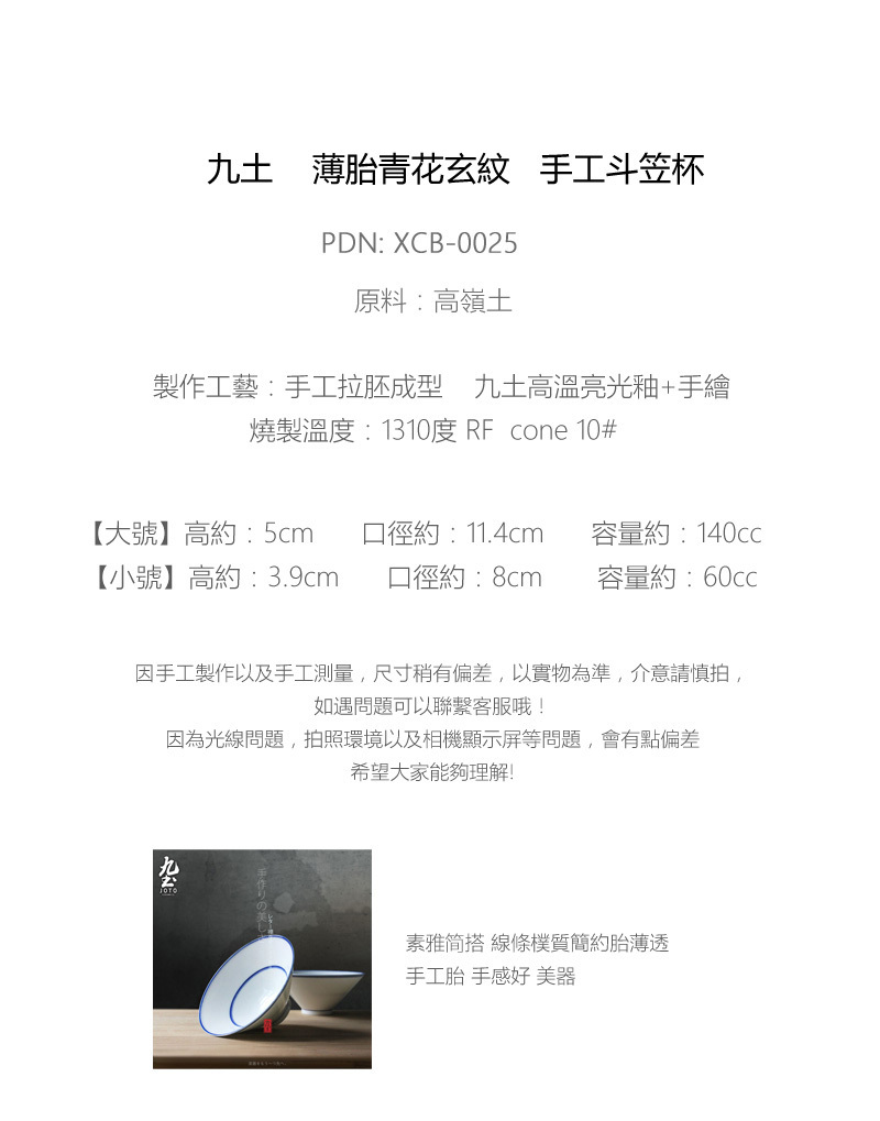 手工精緻 胎質透白淨細膩 樸素復古